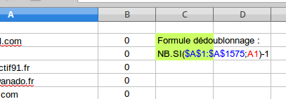 Il suffit de réaliser les opérations suivantesdans la colonne B : copier la formule : =NB.SI($A$2:$A$1000;A2)-1 dans la cellule B2