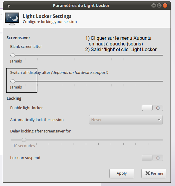 Lorsque vous diffusez une présentation PowerPoint / Impress par exemple, l’écran peut se mettre en veille ! Solution 1 :