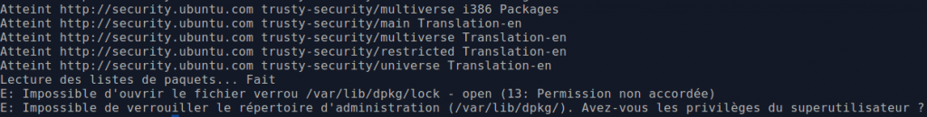 Parfois, lorsqu’on exécute une des commandes : # sudo apt-get install [prog] ou # sudo apt-get upgrade on obtient le