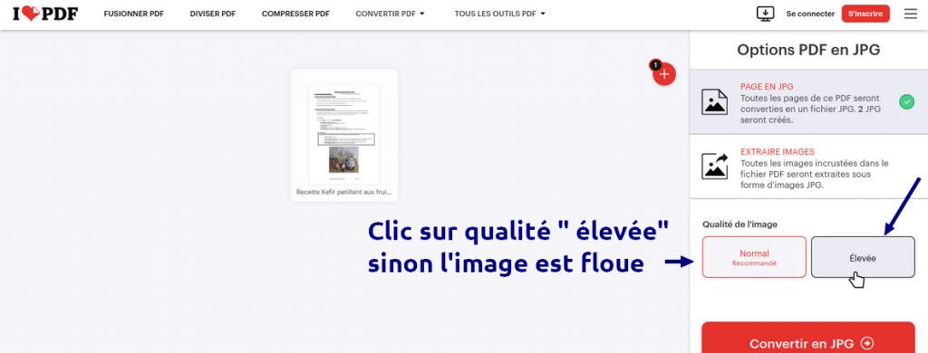 Cliquer sur la qualité d’image : élevée sinon l’image est floue.