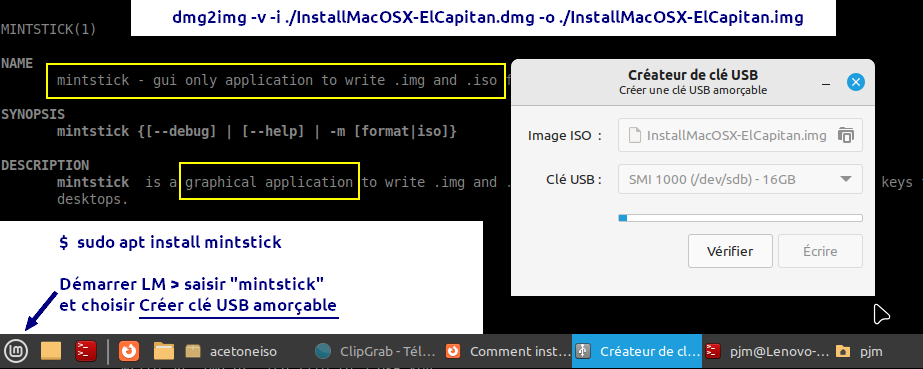 - Ouvrir le programme « mintstick » = « Créateur de clé USB amorçable »