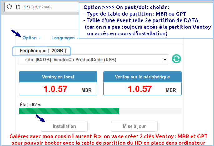 1. Méthode ‘web’ pour créer une clé Ventoy (MBR et GPT)