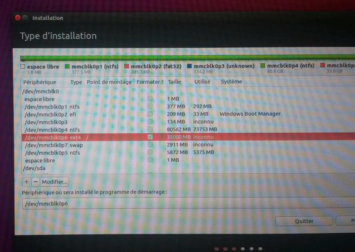 pour éviter que la tablette de se fige. - Créer un espace libre sur le HD (avec Win : « Disques ») AVANT d’installer Linux (sinon KO)