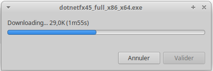 5. WineTricks : installer les composants … dotnetfx45 (qui demandera aussi dotnetfx35 et autres MONO .. qui s’installent ensuite)