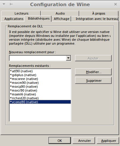 6. Installer les programmes via l’interface de « Configurer Wine » (mieux qu’avec # bash winetricks iTunesSetup.exe)