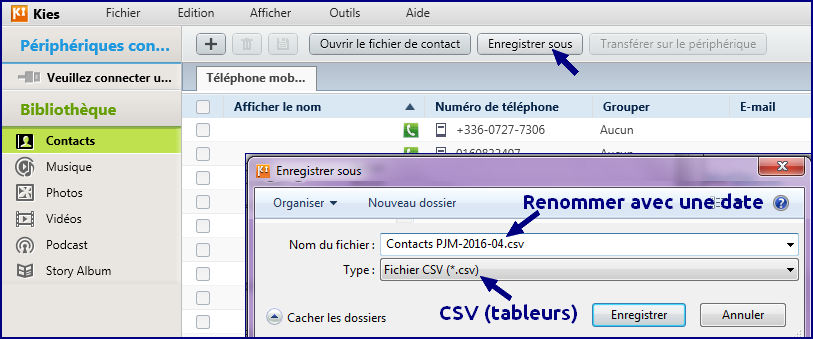 1.2 Installer SAMSUNG KIES 2.0 (en plus) pour convertir vos contacts en fichier EXCEL