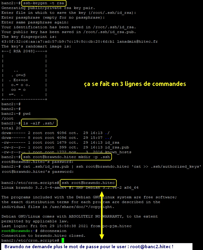 $ ssh root@brawndo.hhhhh (pour tester : le serveur ne demande plus de pswd !)