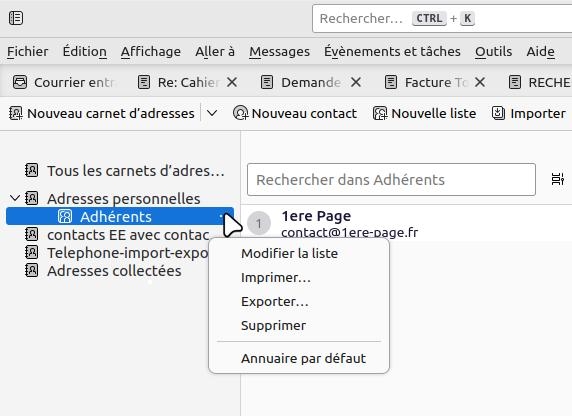 - Clic sur icone en haut à gauche > Carnet d’adresses